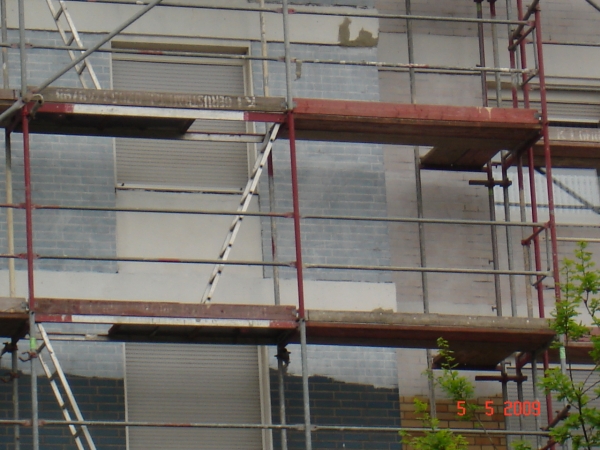 Betonsanierung und Aufbringung eines Wärmedämm-Verbundsystemes mit anschließender farbiger Putz- Fassadengestaltung.